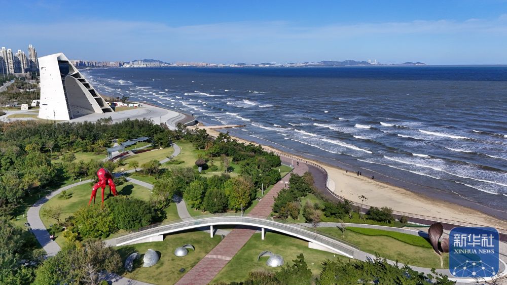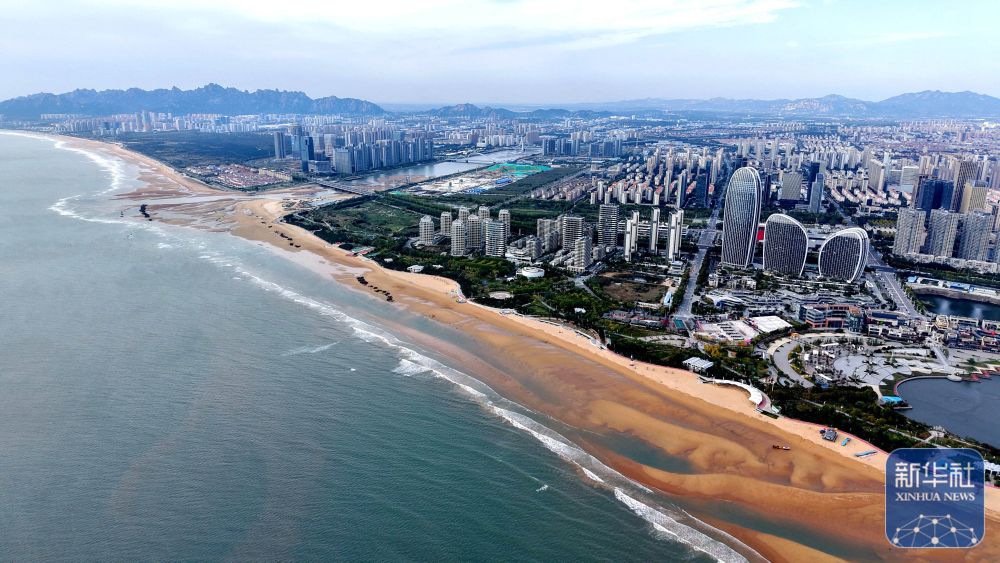 ↑10月21日拍摄的山东青岛灵山湾景色(无人机照片)。新华社发(俞方平 摄)